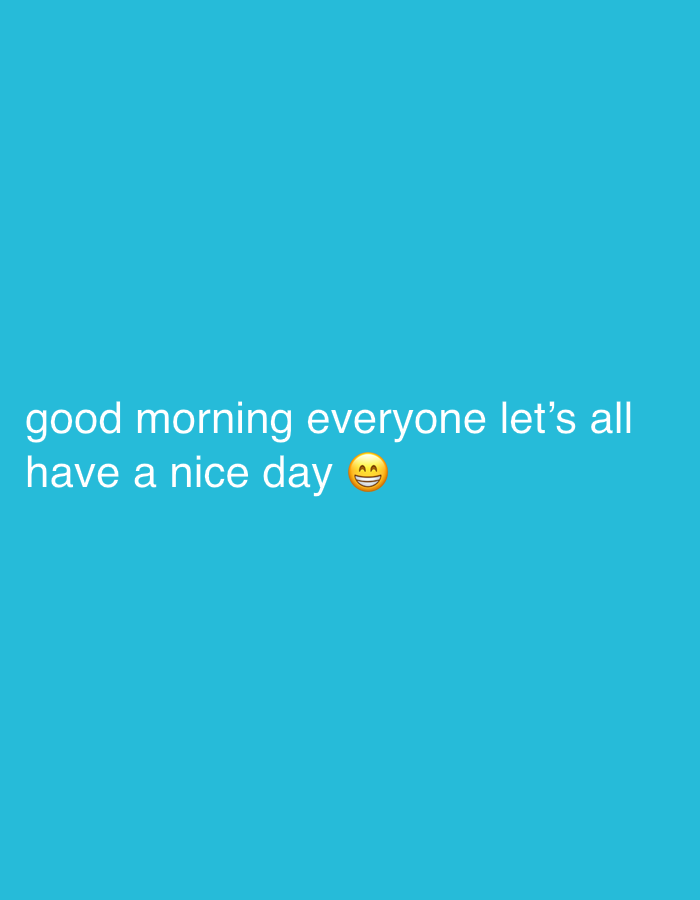 The image is a light blue background with the text "good morning everyone let's all have a nice day" written in white