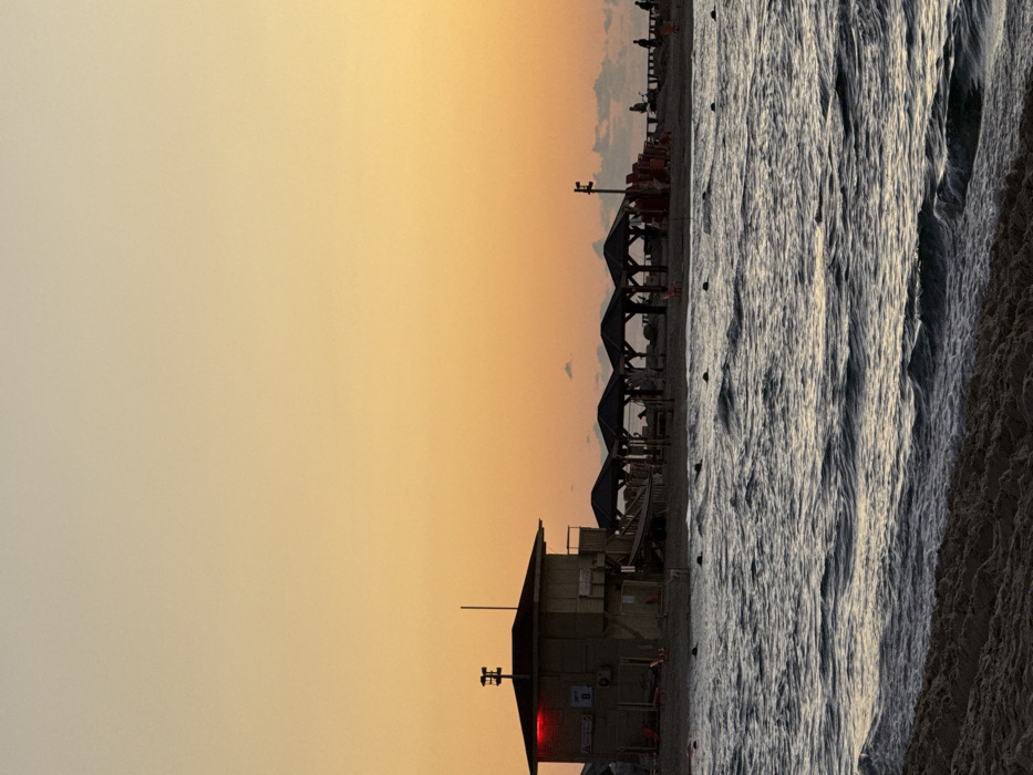 - "The image depicts a beach scene during sunset or sunrise, characterized by a gradient sky transitioning from light yellow at the top to deep orange at the horizon" by FM-6nxPk2, licensed under CC BY 4.0