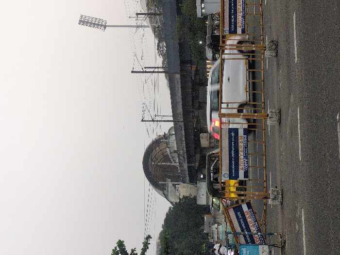 The image depicts an urban street scene in Chennai, India, near the M