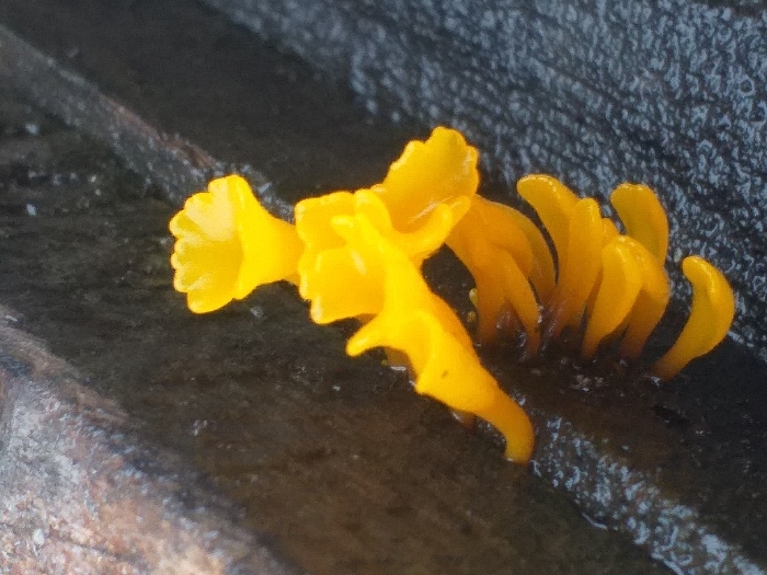 - "A cluster of bright yellow jelly fungus, likely Tremella mesenterica, grows on dark, decaying wood" by FM-lF8872, licensed under CC BY 4.0
