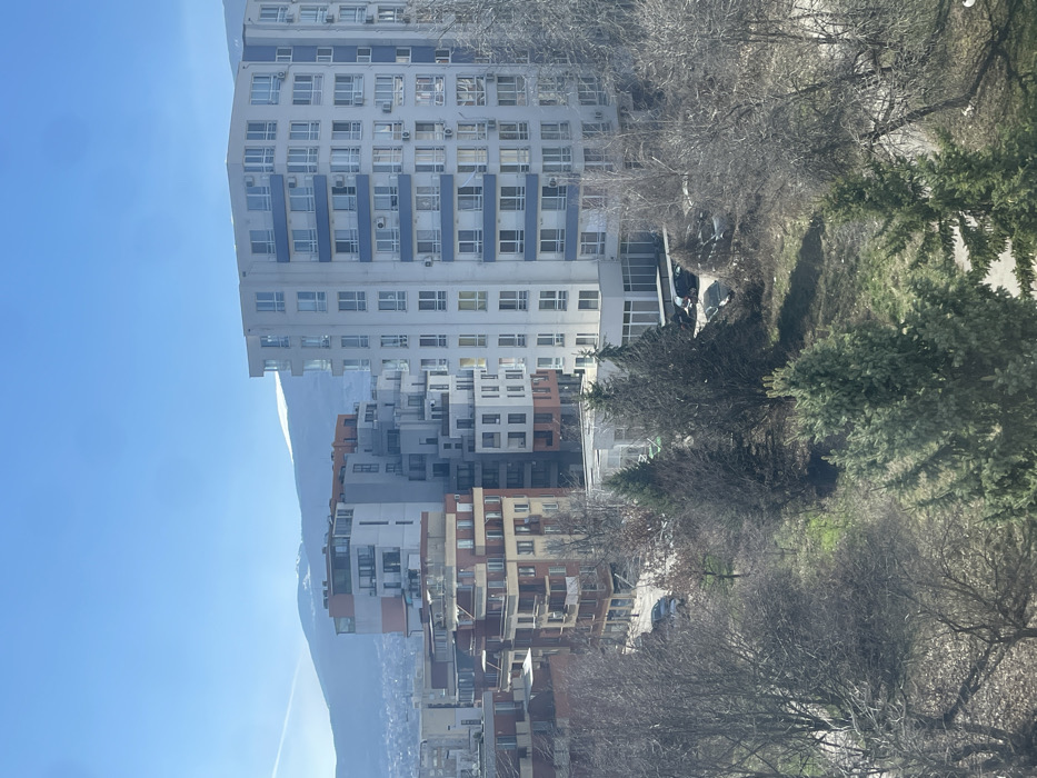 - "This image depicts an urban landscape in Sofia, Bulgaria, with Vitosha Mountain, partially snow-capped, visible in the distant background under a clear blue sky with a single contrail" by FM-pEcJ83, licensed under CC BY 4.0