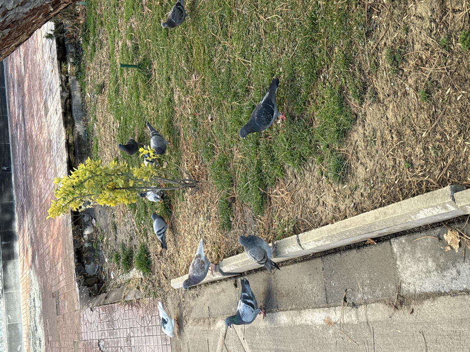 - "A group of pigeons gathers near a small tree on a grassy area adjacent to a sidewalk" by FM-7p9nD3, licensed under CC BY 4.0