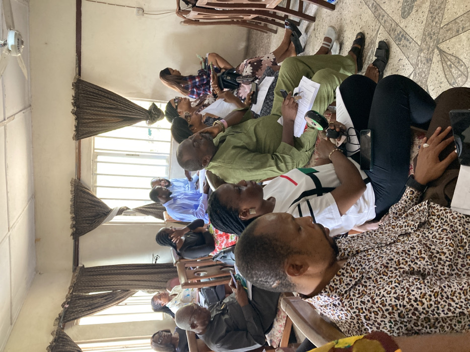 An indoor gathering is depicted in the city of Umuahia, Nigeria