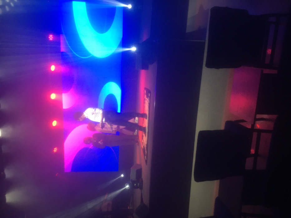 An indoor stage event is captured in Jos, Nigeria