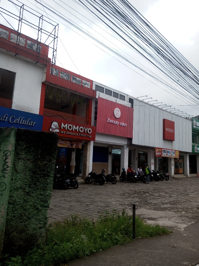 A street view reveals several storefronts, including "Momoyo Ice Cream & Fruit Tea", "Zbeauty Salon", and "Niceso"