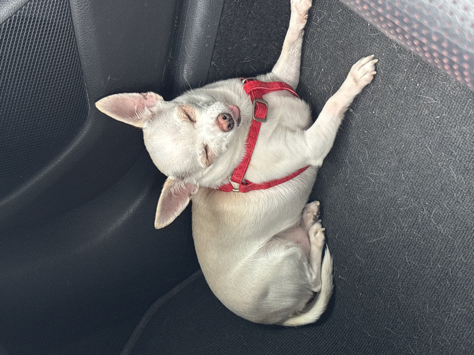 - "A small, cream-colored Chihuahua dog is resting inside a vehicle in Cherna Gora, Bulgaria" by FM-HrwM43, licensed under CC BY 4.0