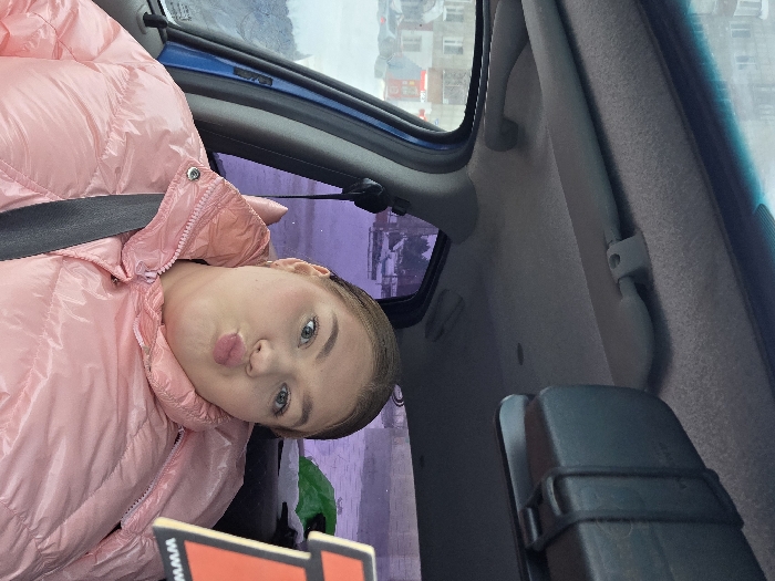 - "A young adult female is depicted sitting in the front passenger seat of a vehicle, facing the camera with her lips puckered" by FM-SNFZT2, licensed under CC BY 4.0