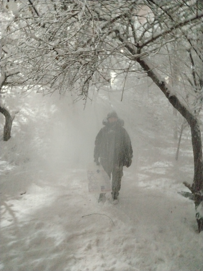 - "The scene depicts a solitary individual walking through a heavily snow-covered outdoor environment in Tashkent, Uzbekistan, during what appears to be a significant snowfall or blizzard" by FM-l6ExC3, licensed under CC BY 4.0