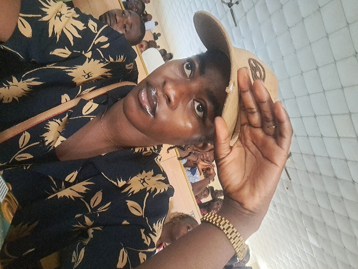 The image displays a dark-skinned individual, likely female, in the foreground, positioned within an indoor environment consistent with a lecture hall or auditorium in Makurdi, Nigeria