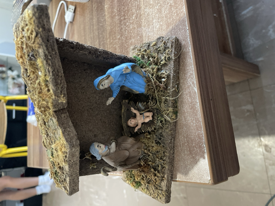 - "The image presents a miniature Nativity scene positioned on a light brown wooden table" by FM-tqCpG2, licensed under CC BY 4.0