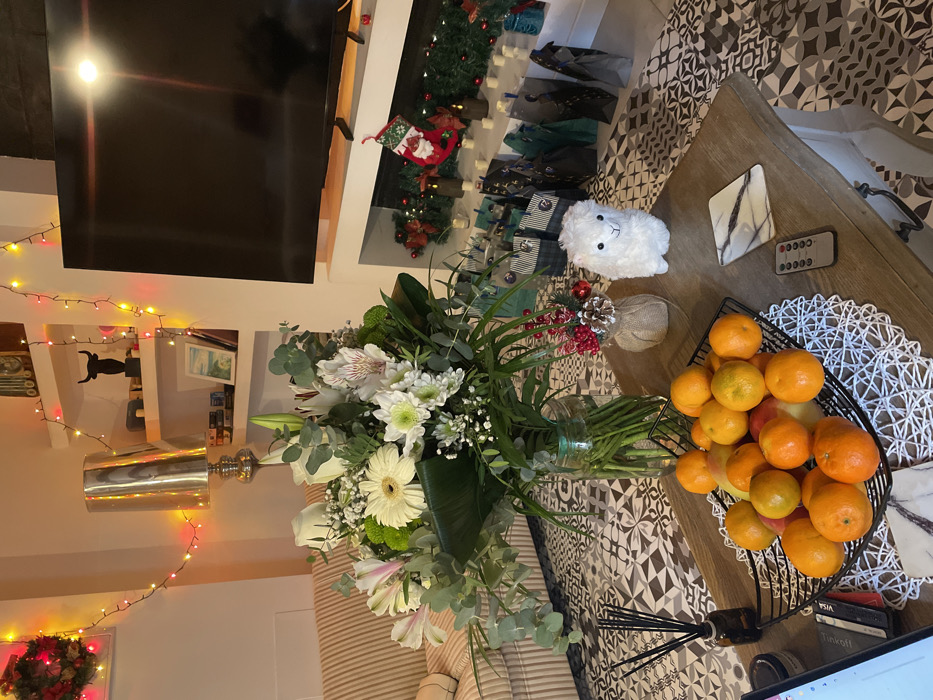This image depicts a holiday-decorated living room interior in València, Spain