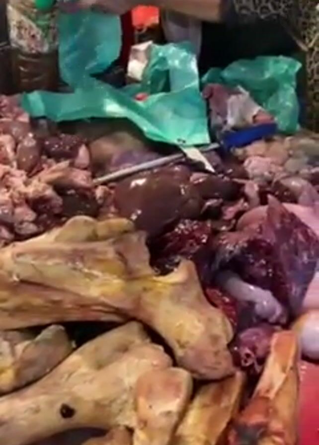meat stall, probably at a market