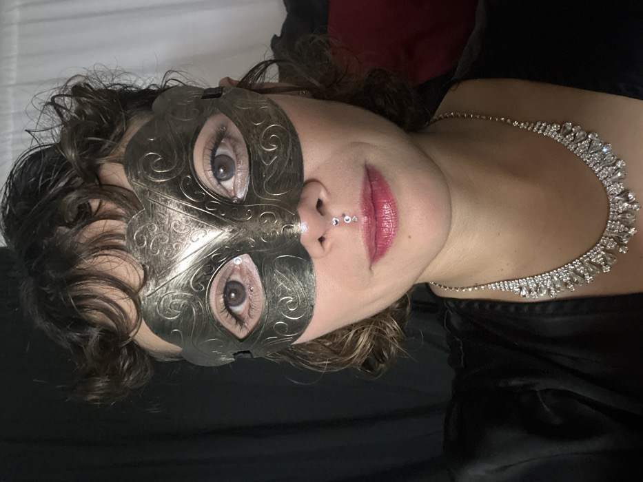 - "A woman wearing a silver mask and necklace with gems is shown in a close-up" by FM-JqEJc2, licensed under CC BY 4.0