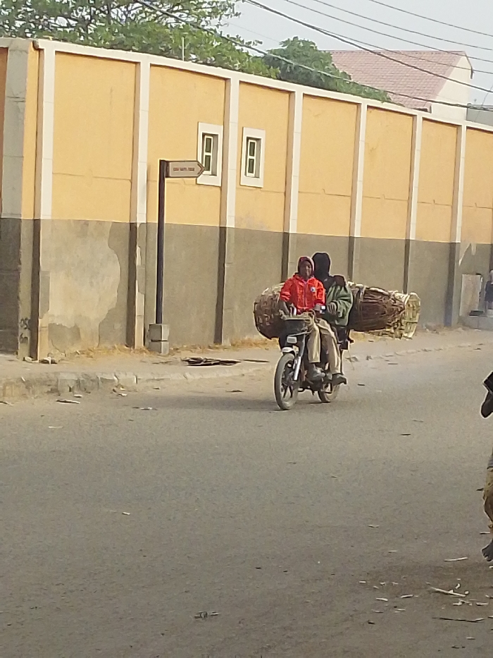 The image depicts an outdoor street scene in Babban Giji, Nigeria