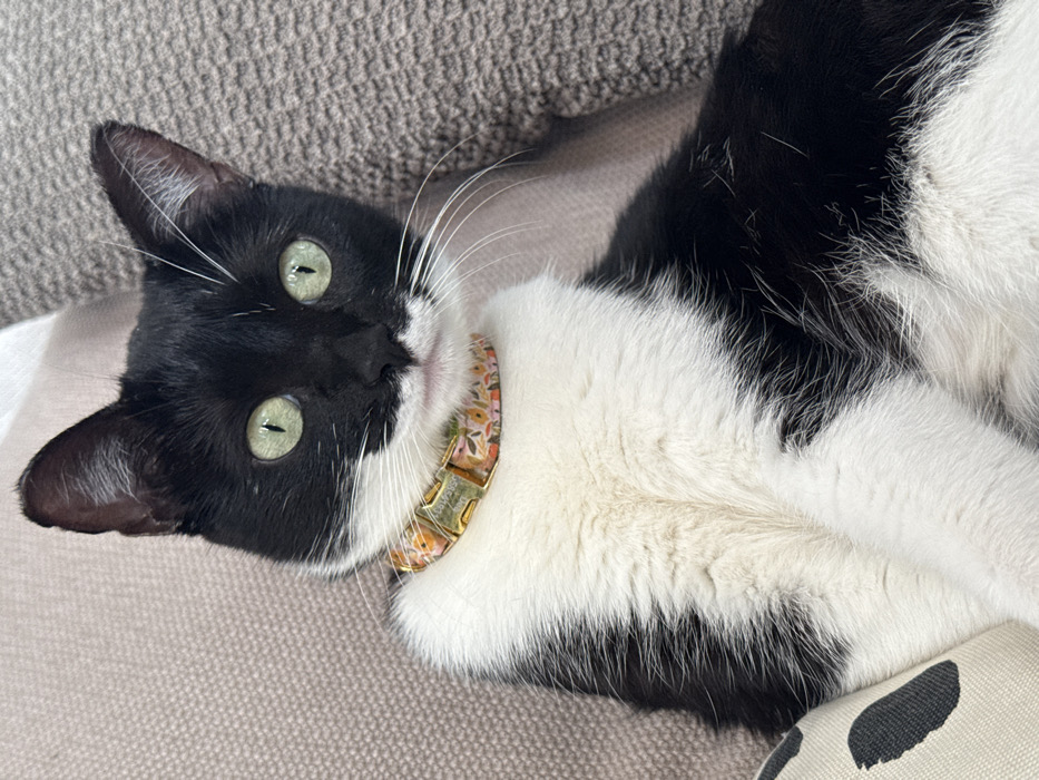- "A black and white tuxedo cat with bright green eyes and a prominent white muzzle is depicted in a medium close-up, looking directly at the viewer" by FM-LwN383, licensed under CC BY 4.0