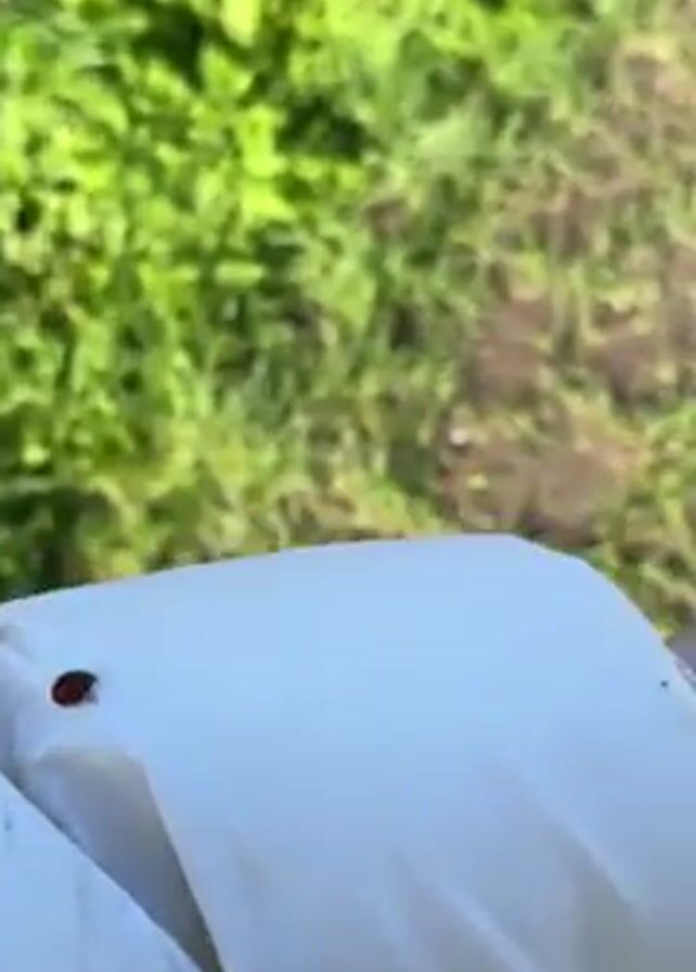 The video starts with a close-up of a red ladybug crawling on a white gloved hand