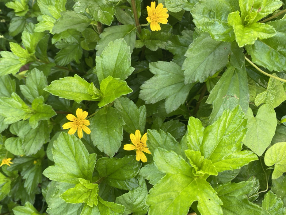 - "The image displays a close-up, high-angle view of dense, interwoven green foliage featuring multiple small, bright yellow, daisy-like flowers" by FM-rkm0j2, licensed under CC BY 4.0