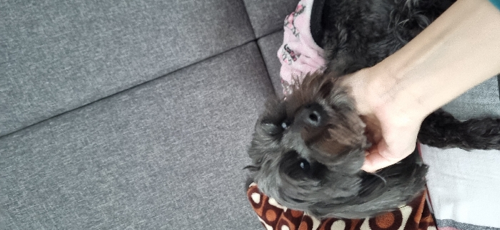 - "A small, dark-haired dog is held by a fair-skinned human hand" by FM-rGZrc2, licensed under CC BY 4.0