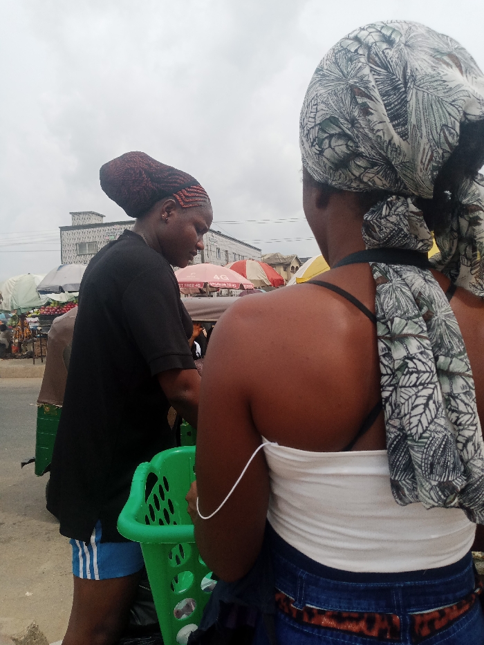 This image depicts an outdoor market scene in Ura Nta Umuarandu, Nigeria, under an overcast sky