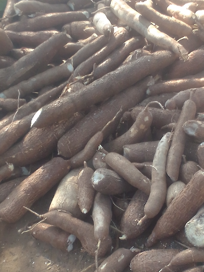 - "A large, haphazard pile of raw, unpeeled cassava roots occupies the majority of the frame, viewed from a slightly elevated angle" by FM-6TI813, licensed under CC BY 4.0