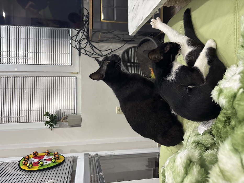 - "The image depicts an interior residential scene in Varna, Bulgaria, featuring three cats and various household objects" by FM-ceVnE2, licensed under CC BY 4.0
