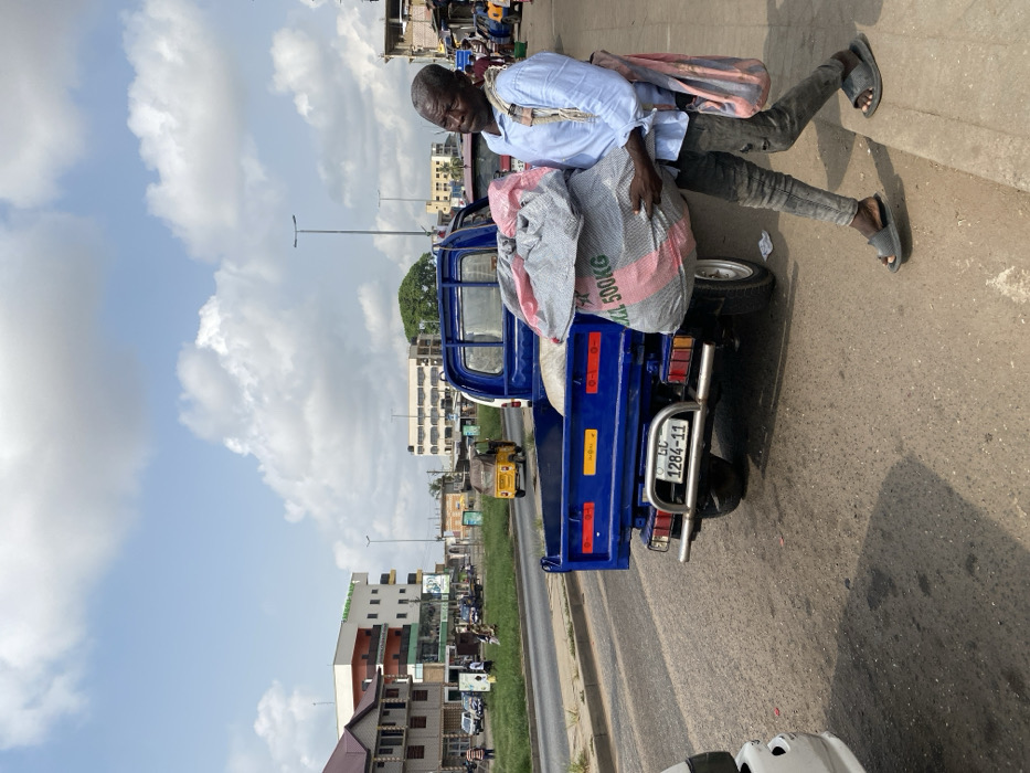 - "A male subject is depicted walking on a concrete sidewalk in Ablekuma, Ghana, during daylight hours under a sky with scattered cumulus clouds" by FM-pLZic2, licensed under CC BY 4.0
