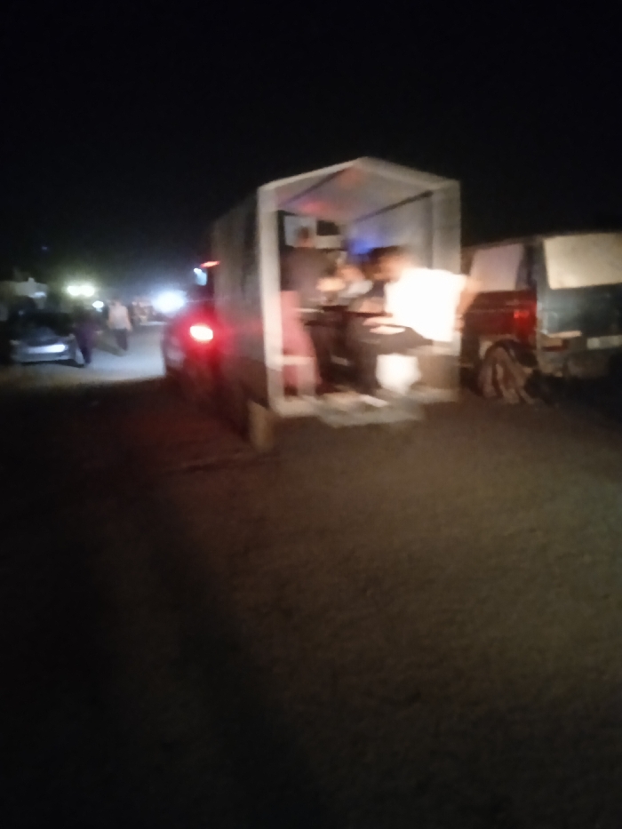 This is a nighttime image captured in Al-Mawasi, Palestinian Territories, depicting an outdoor scene characterized by low light and motion blur