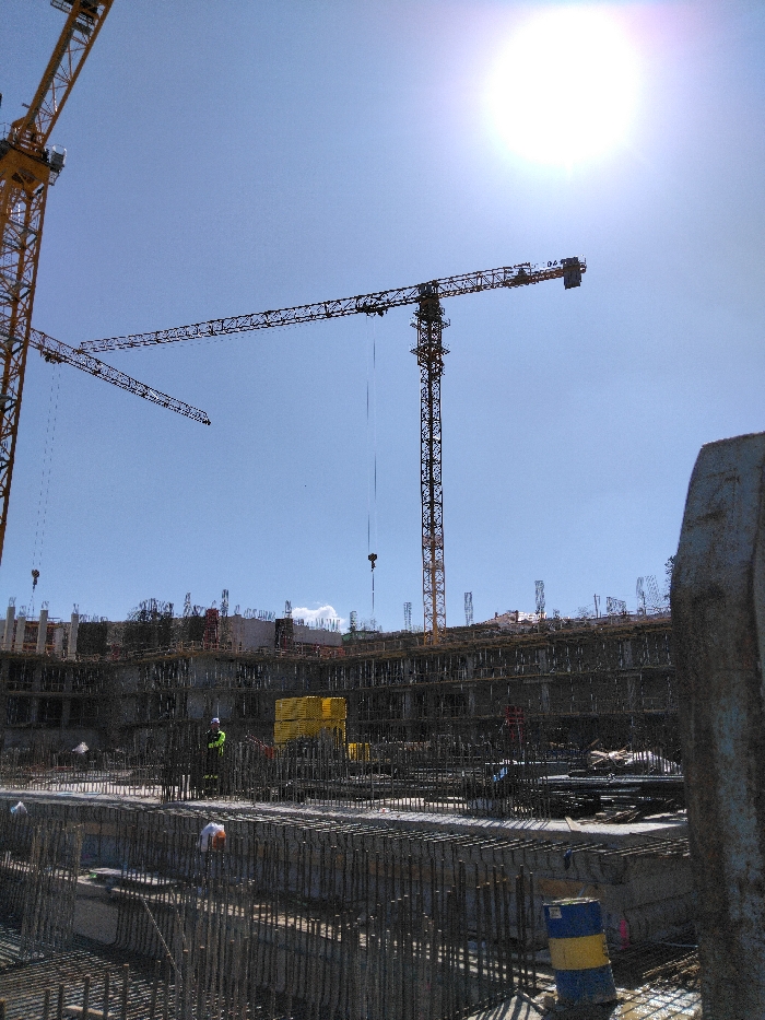 - "The image displays an active, multi-level construction site in Sofia, Bulgaria, under a clear, bright blue sky with the sun visible in the upper-right quadrant" by FM-u58mT2, licensed under CC BY 4.0