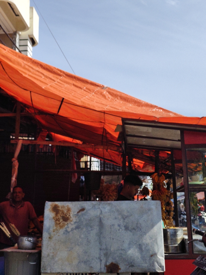 This image depicts an outdoor market or street food stall in Wilayah Administrasi Gp