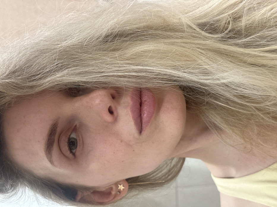 - "A female subject with fair skin and long, wavy blonde hair occupies the frame, with her hair obscuring the right side of her face from the nose down" by FM-cOgJG3, licensed under CC BY 4.0