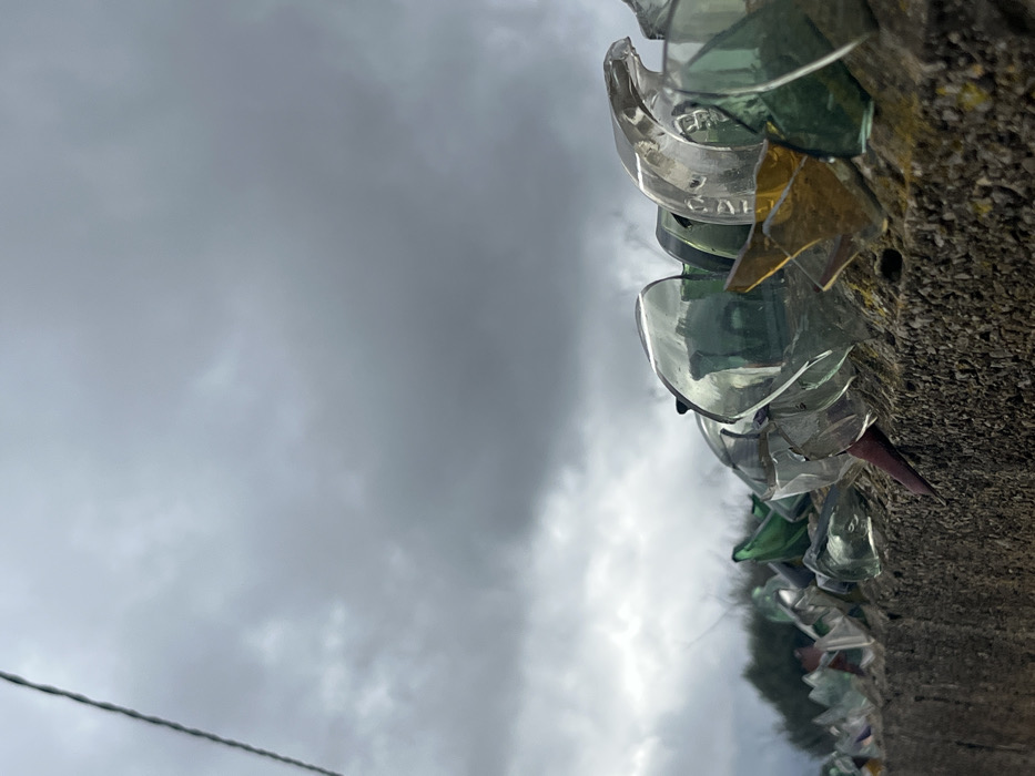 - "This image captures a concrete perimeter wall topped with embedded broken glass shards, located in Palma de Mallorca, Spain, beneath a heavily overcast sky" by FM-Gp7zE3, licensed under CC BY 4.0