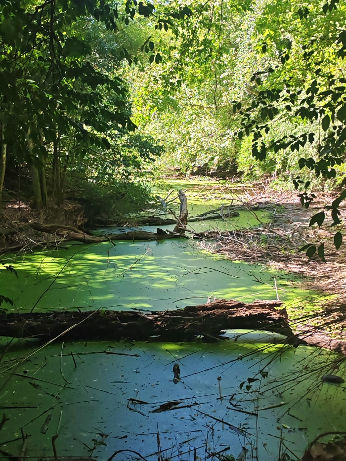 - "The scene depicts a natural water body, possibly a swamp or slow-moving creek, within a densely forested area" by FM-nlNdo1, licensed under CC BY 4.0