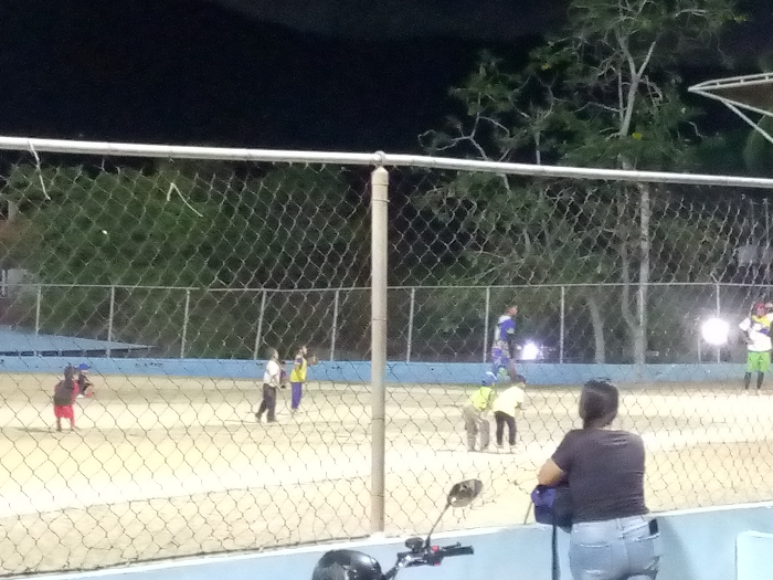 - "A nighttime outdoor scene shows a group playing cricket behind a chain-link fence" by FM-Q5qB73, licensed under CC BY 4.0