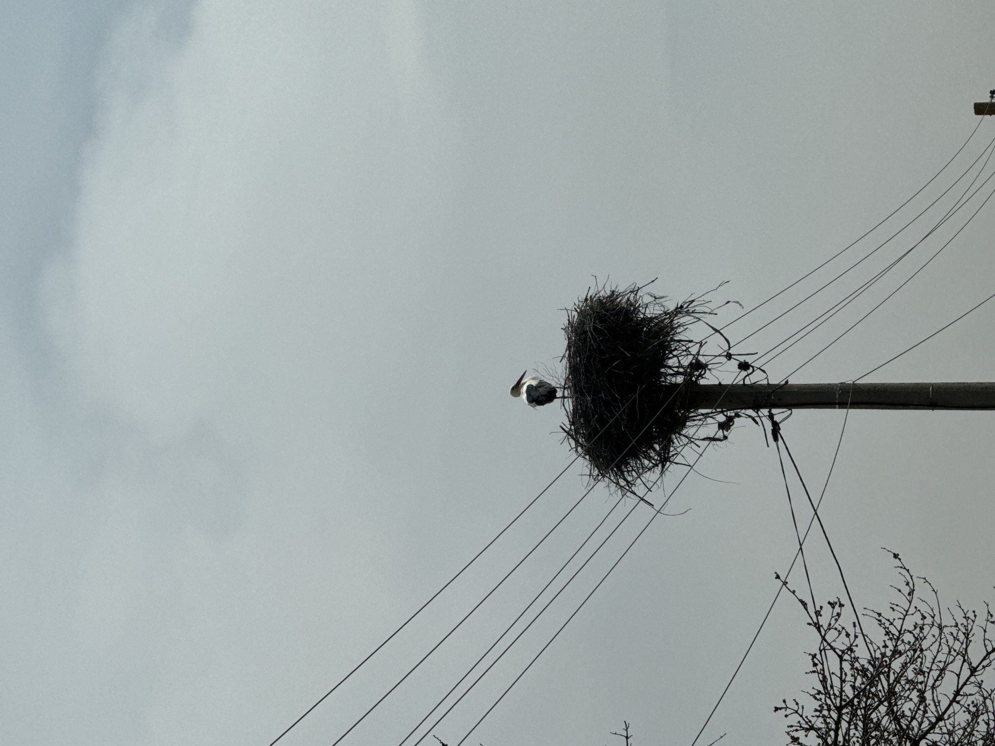 - "A bird, likely a stork, rests in a large nest constructed atop a utility pole" by FM-swcSs2, licensed under CC BY 4.0