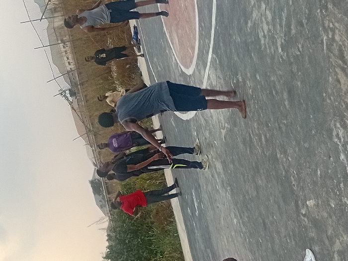 - "On an outdoor basketball court, a group of men is stretching" by FM-N2WZw1, licensed under CC BY 4.0