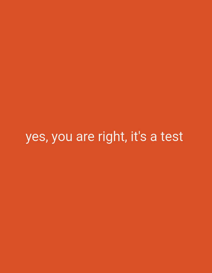 The image is a solid orange background with the text "yes, you are right, it's a test" centered horizontally and positioned towards the middle