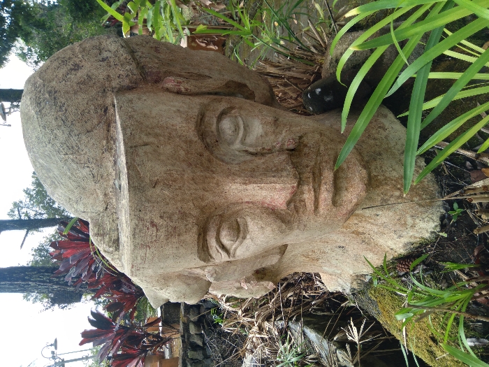 - "A large, weathered, light-colored stone or concrete sculpture of a human head is centered in an outdoor setting in Palasari, Indonesia" by FM-FI4Yr1, licensed under CC BY 4.0