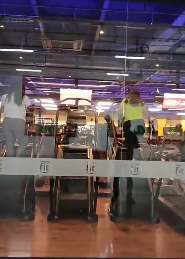 inside of a Smart Fit gym from outside a glass wall