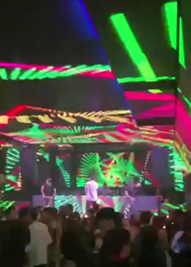 Here’s a description of the video: The video captures a live performance on a stage in what appears to be a nightclub or event venue
