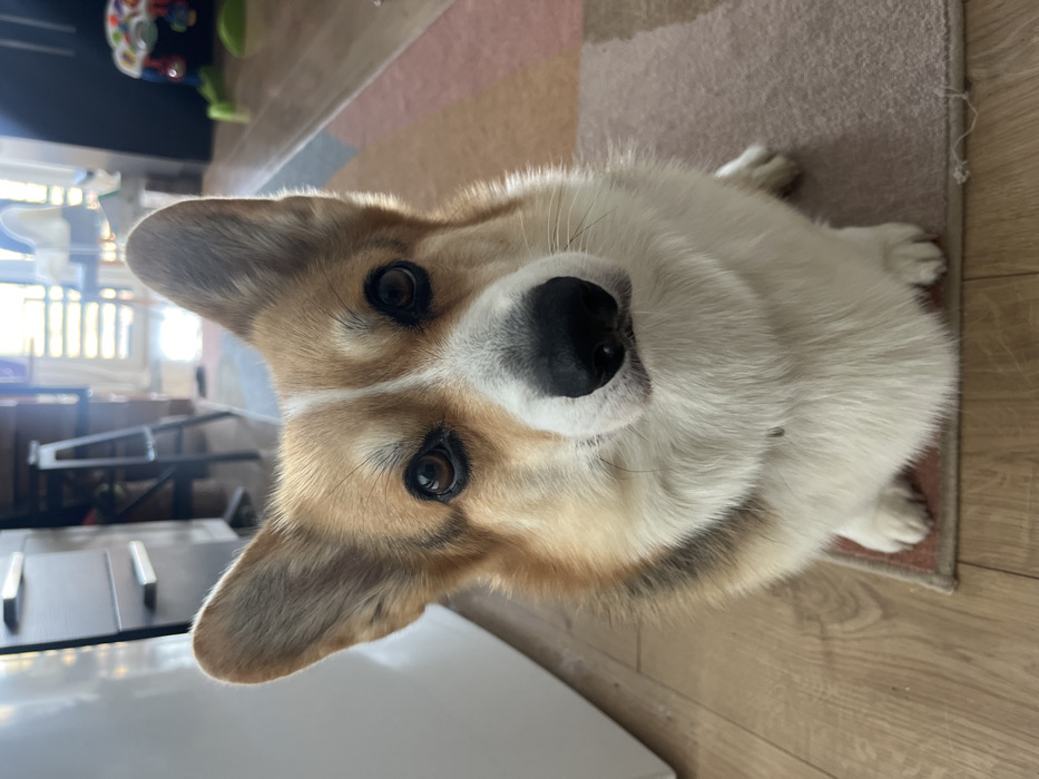 - "An indoor scene in Gangloff, Germany, features a tri-color Pembroke Welsh Corgi, primarily tan, white, and dark brown, seated centrally on a small, rectangular light brown rug" by FM-4GKkh1, licensed under CC BY 4.0