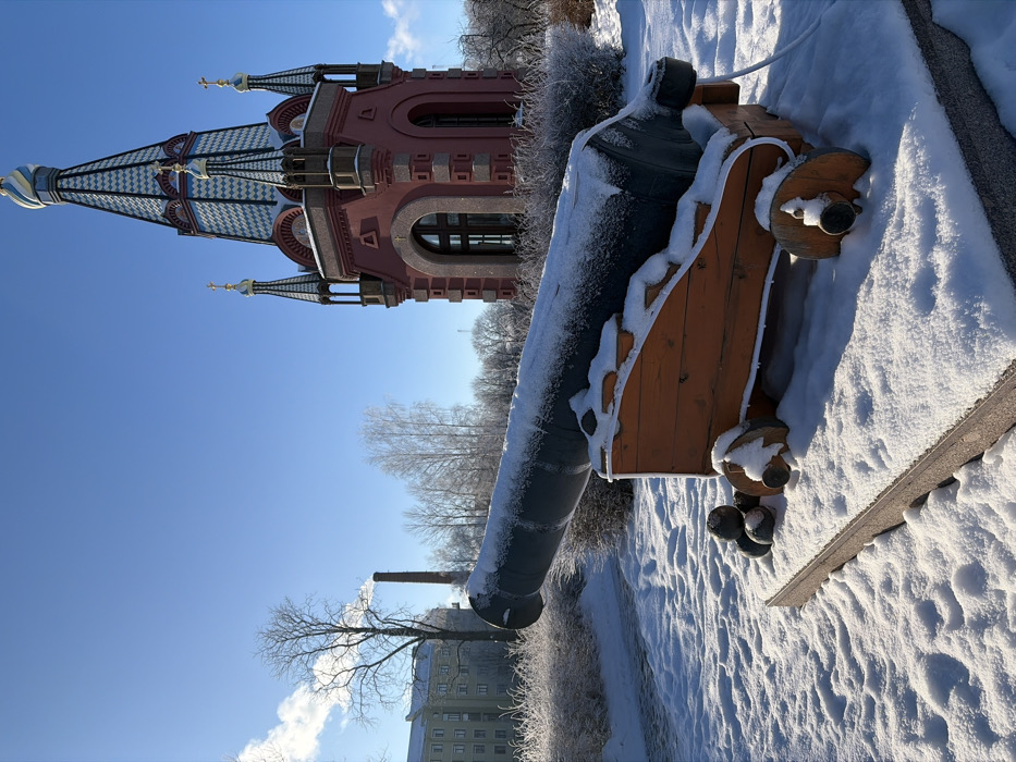 - "The image displays a snow-covered historical cannon in Kronstadt, Russia, under a clear, bright blue winter sky" by FM-Opnib2, licensed under CC BY 4.0