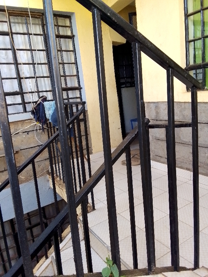 The image depicts a multi-story building's stairwell and landing area in Kalimoni ward, Kenya