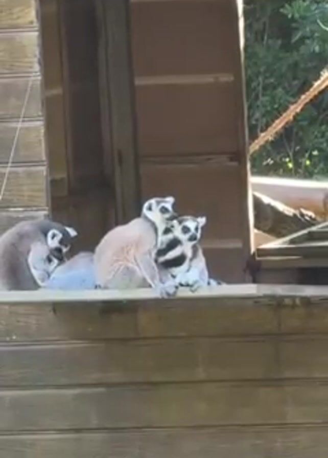 - "Four ring-tailed lemurs are gathered on a wooden ledge within a wooden structure resembling a shed or small house" by FM-BCfsB2, licensed under CC BY 4.0