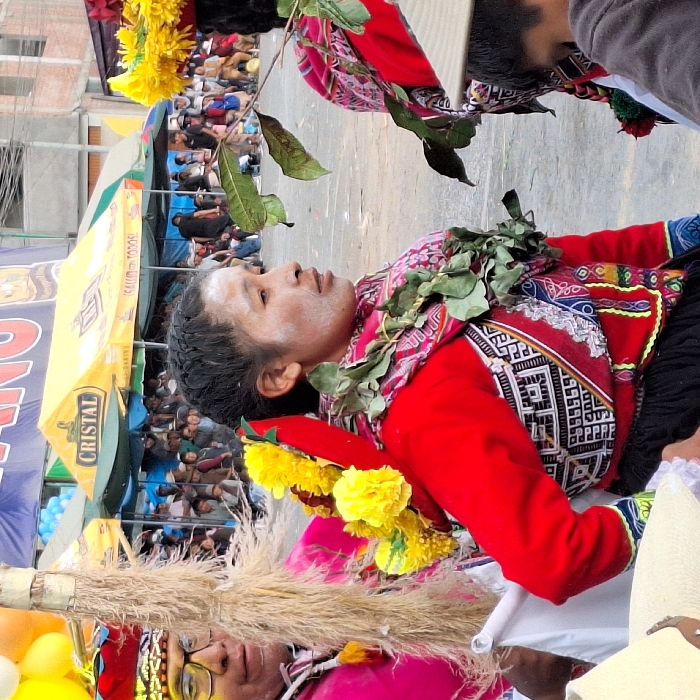 The image depicts an outdoor cultural event in José Luis Bustamante y Rivero, Peru