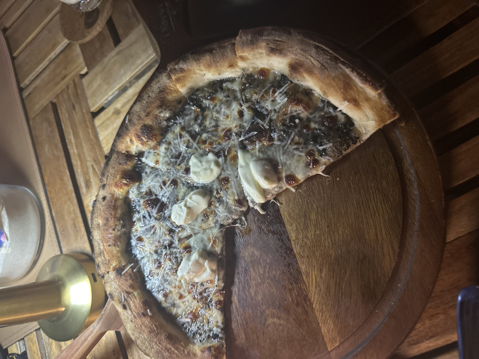 - "The image displays a partially consumed pizza, presented on a circular wooden pizza board, at a dining establishment in Ko Samui, Thailand" by FM-S4vcm1, licensed under CC BY 4.0