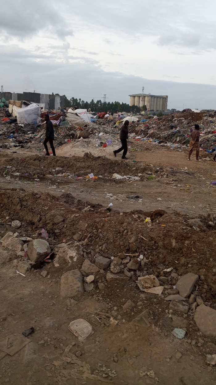 A landscape of environmental degradation shows mounds of garbage littered across the terrain