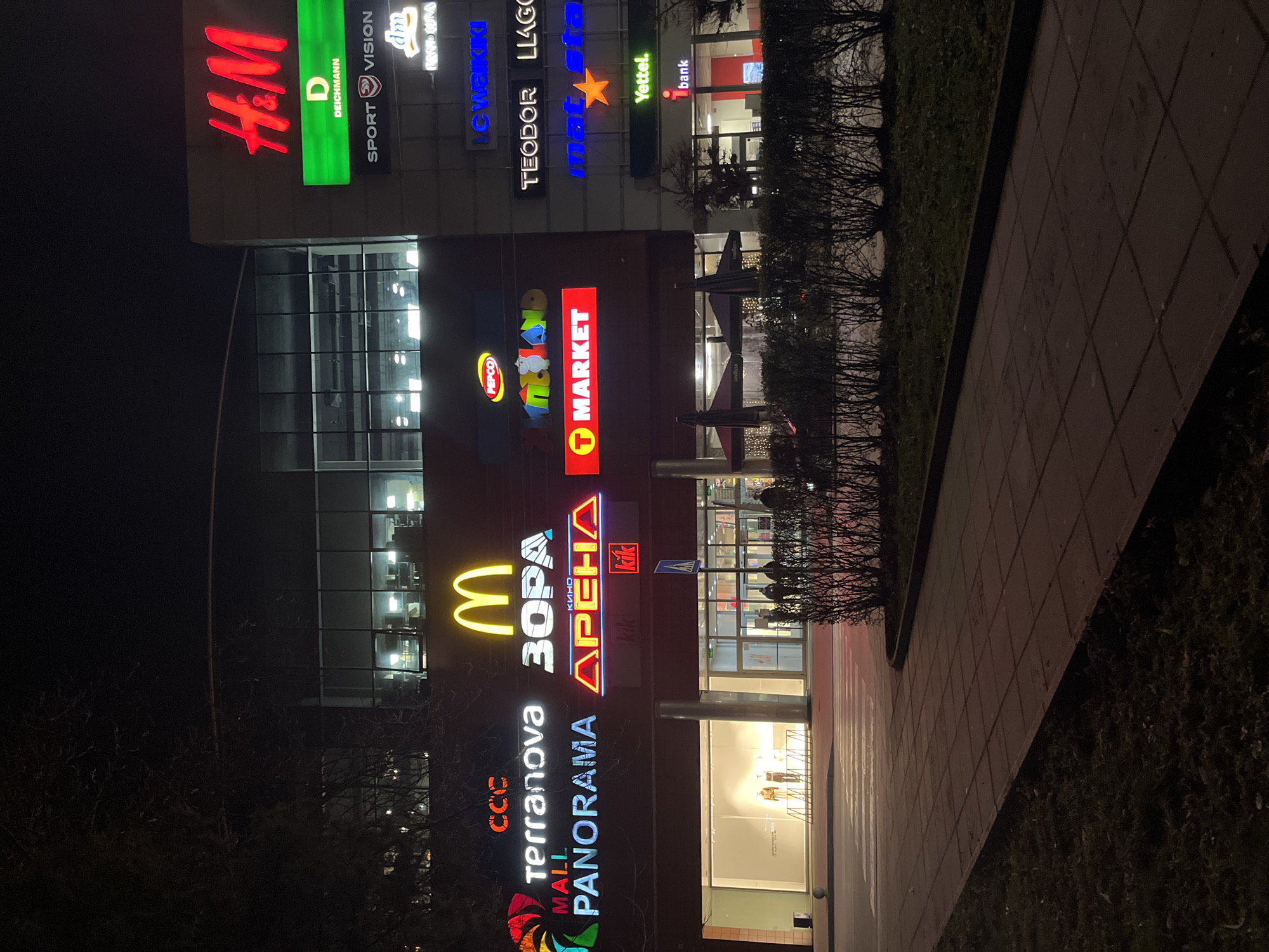 - "The image displays the exterior of a multi-story commercial building at night, identified as Mall Panorama, located in Pleven, Bulgaria" by FM-EFp8e2, licensed under CC BY 4.0