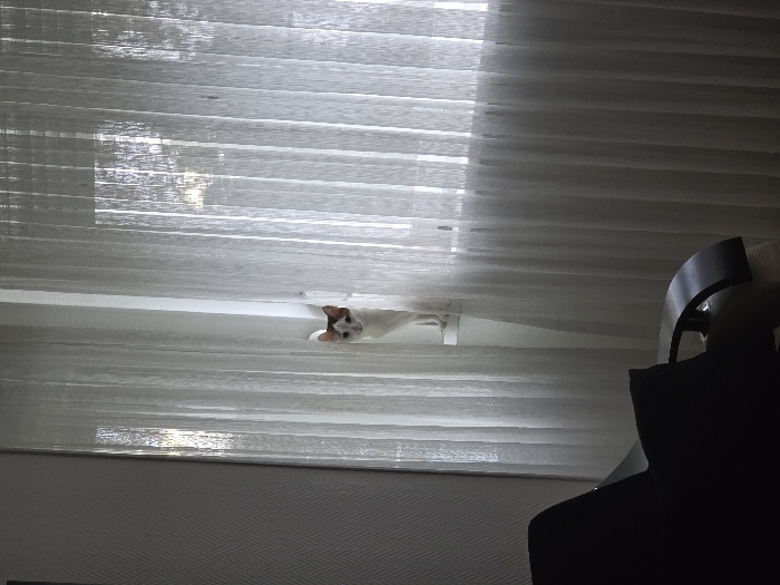 - "A cat peers through a gap in white window blinds, its face and front paws visible" by FM-PPRef1, licensed under CC BY 4.0