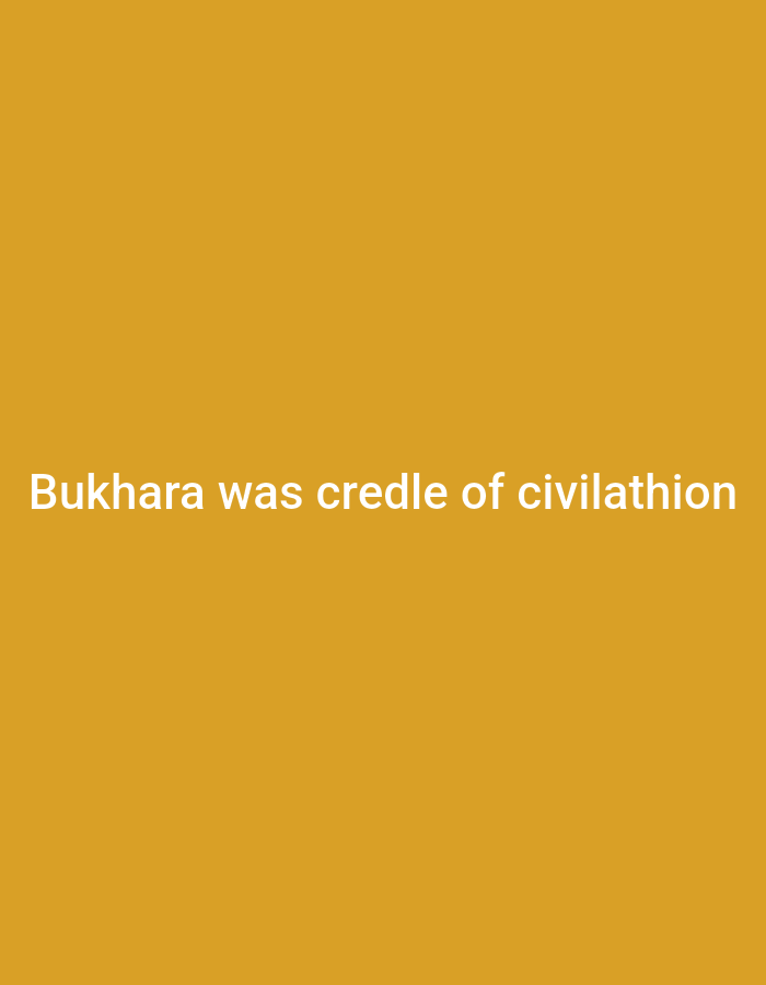 The image displays a solid yellow-orange background. Centered horizontally and positioned in the lower middle portion of the frame is white sans-serif text which reads, "Bukhara was credle of civilathion". No people, objects, actions, or specific environmental details are present in the scene. The location is not discernible from the image content.
