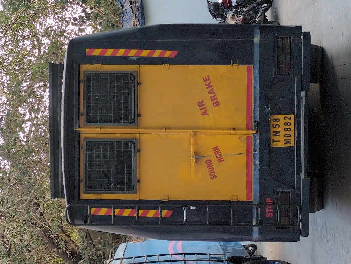 - "This image depicts the rear of a dark grey/black heavy-duty vehicle, possibly a secure transport or specialized bus, situated on a paved surface in the city of Chennai, India" by FM-M0G9X2, licensed under CC BY 4.0